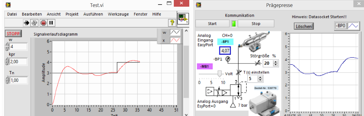 Beispiel : PI-Regler mit Druckstrecke (Festo -Prop.-Druckregelventil) Interface: EasyPort, Virtuelles Modell