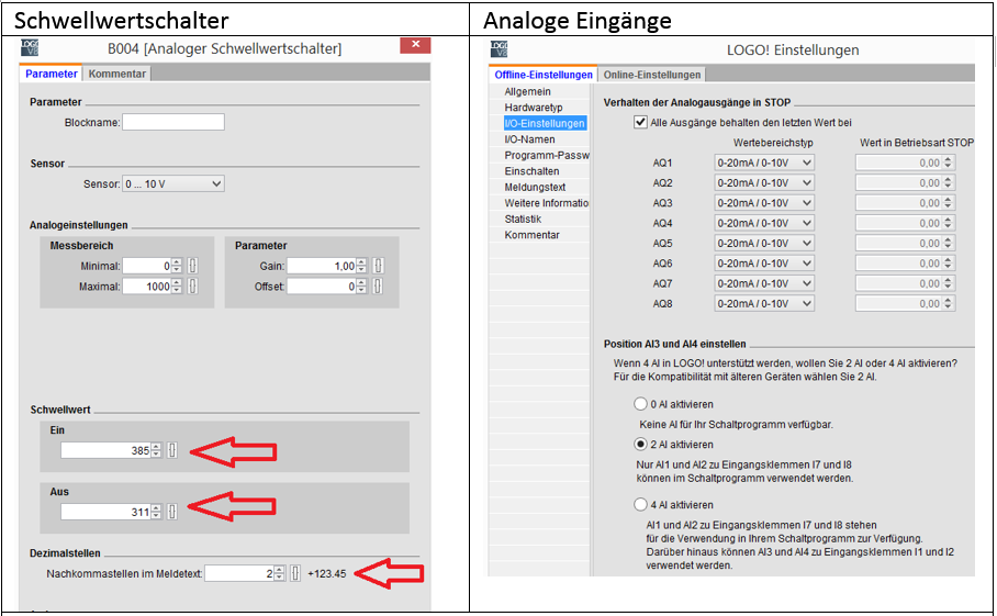 Schwellwertschaler und Analogeingänge konfigurieren: